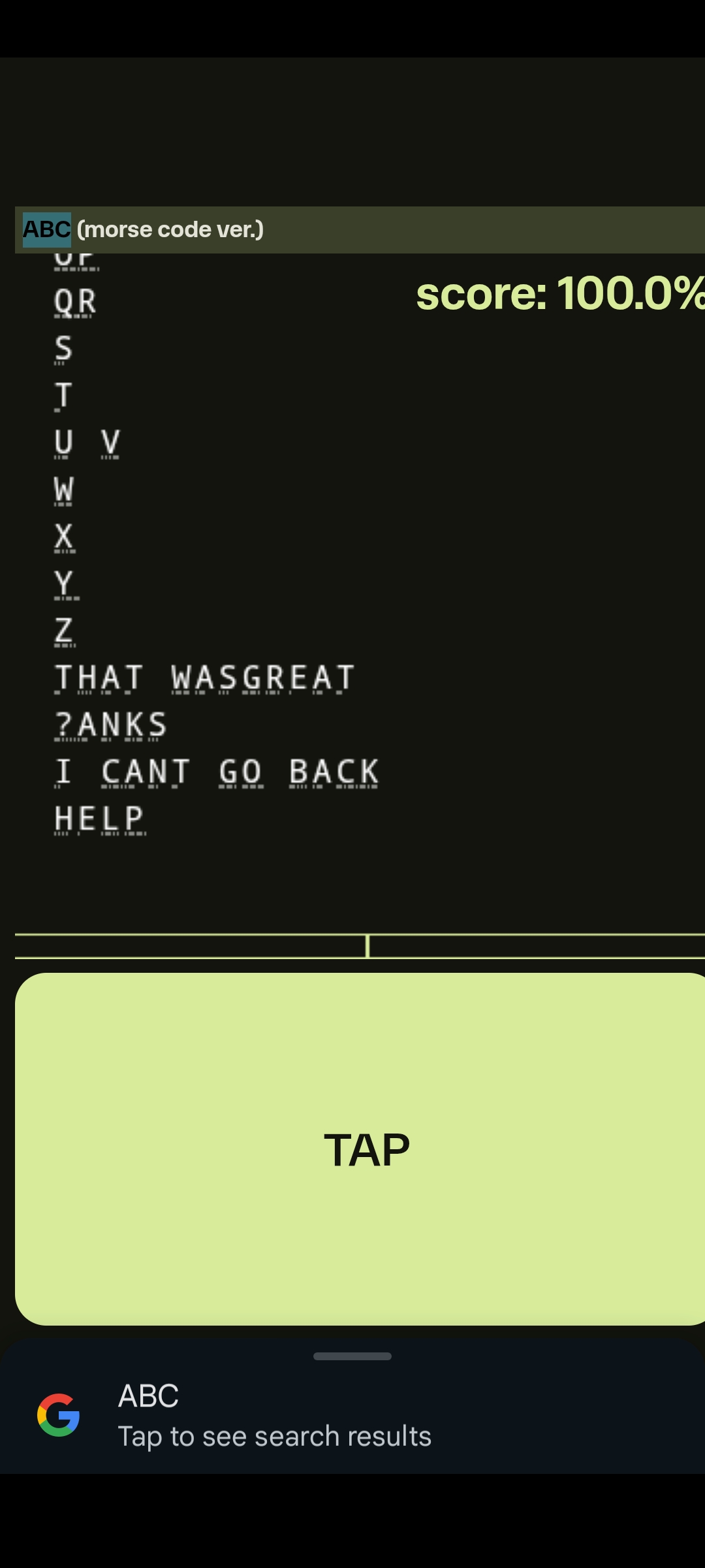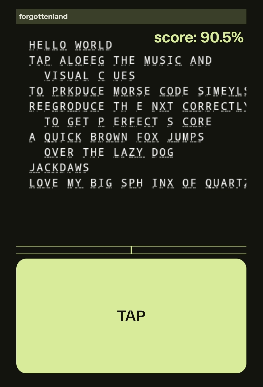 - The Morse code is translated to letters and scored against the target phrase